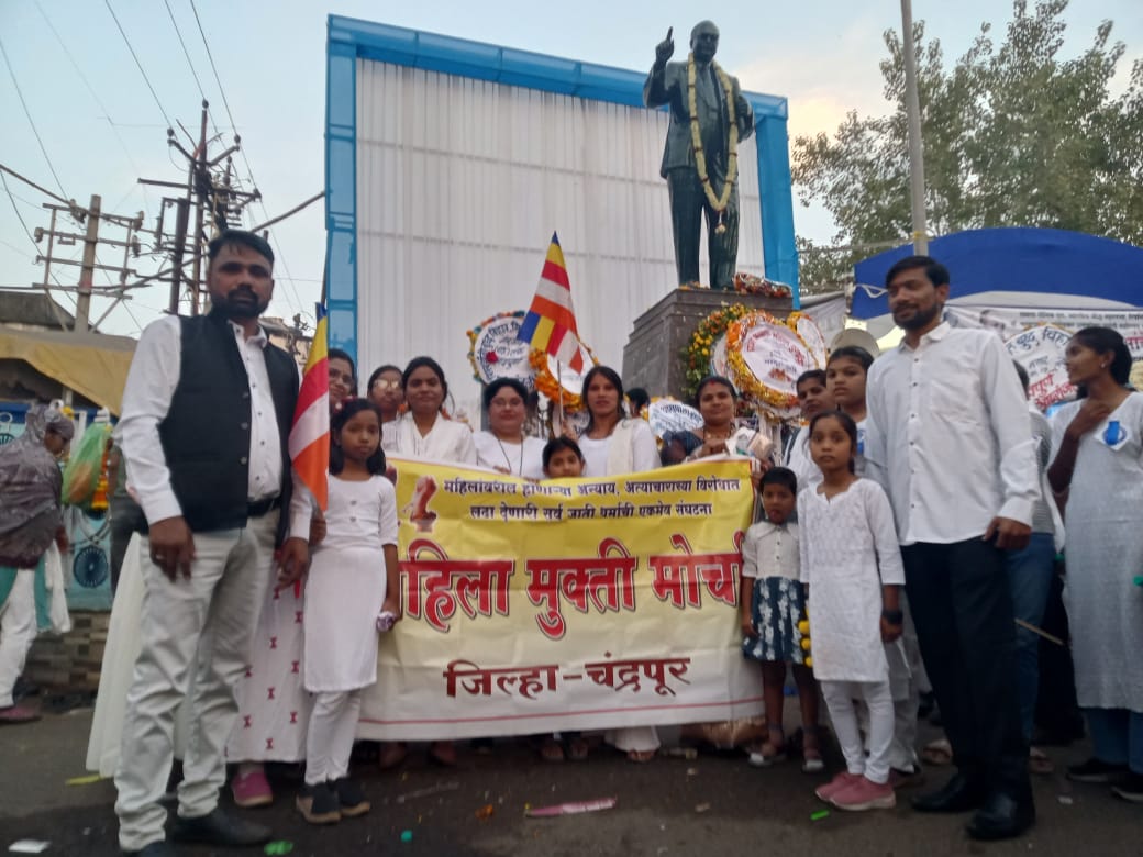 चंद्रपूर जिल्हा महिला मुक्ती मोर्चा द्वारे डॉ आंबेडकर यांना आदरांजली