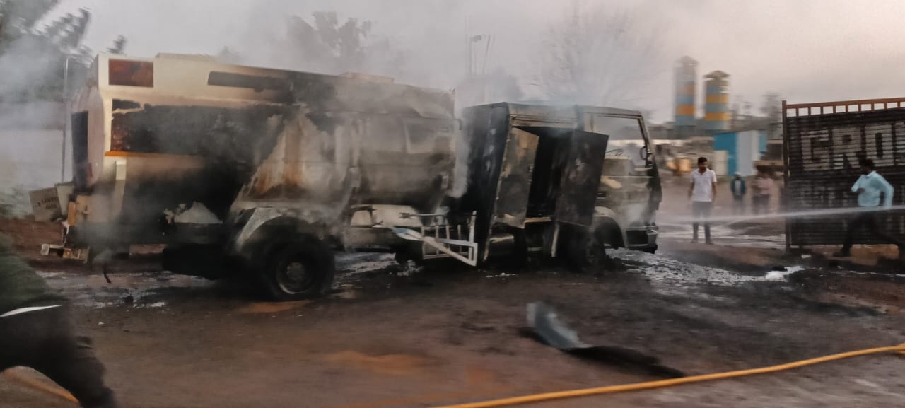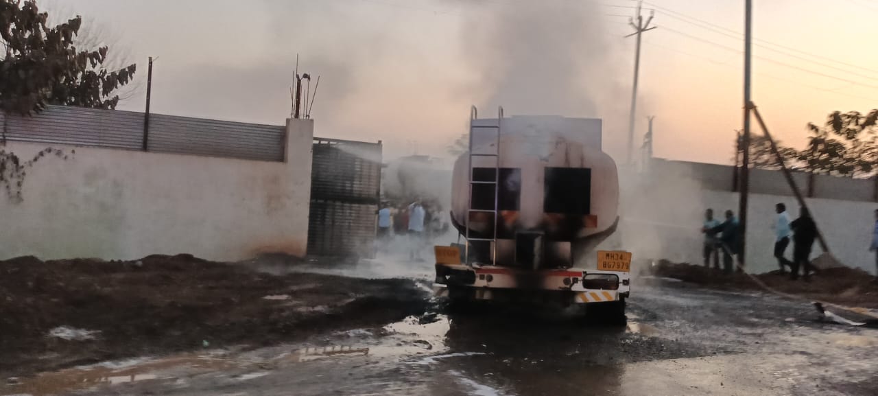 ब्रम्हपुरी येथील श्री. साई पेट्रोल पंप च्या मालकीचे ट्रक क्र. MH 34 BG7979 हे टँकर ट्रक ब्रम्हपुरी नागभीड या राज्यमहामार्गावर KCC या कंपनी ला डिझेल पुरवठा करायला गेला होता. सायंकाळी 5 वाजता च्या दरम्यान KCC कंपनी च्या गेट वर पोहचताच टँकर ला अचानक आग लागली. आग लागल्याचे कडताच परिस्थिती समजून टँकर चालकणे ट्रक राज्यमहामार्गाच्या बाजूला लावला आणि स्वतः ट्रक च्या लगेच खाली उतरून स्वतःचे जीव वाचवले. यामुळे कोणतीही जीवित हानी झालेली नाही अशी प्राथमिक माहिती प्राप्त झाली. ट्रक पेट घेऊन आग मोठी झाली होती. या घटनेची माहिती मिळताच ब्रम्हपुरी अग्निशमन दलाचे कर्मचारी तातडीने घटनास्थळी पोहचले व आग आटोक्यात आणली.