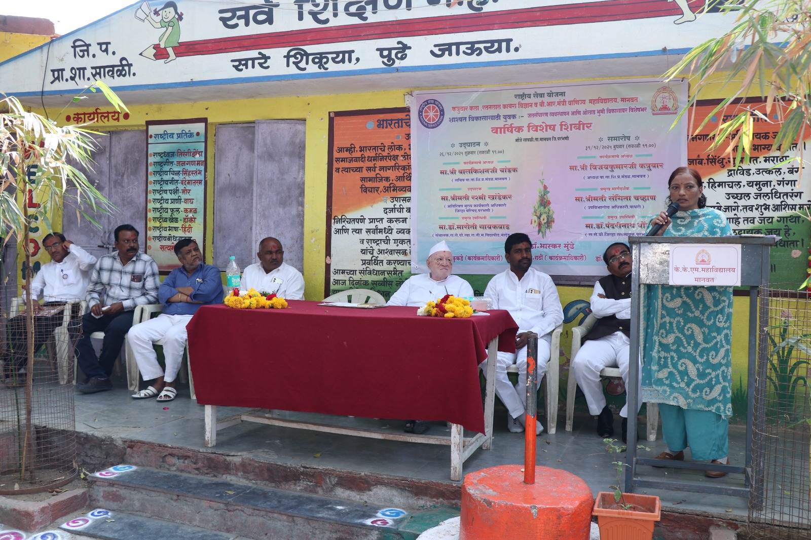 बुधवार, दि. 31 रोजी तालुक्यातील सावळी येथे के. के. एम.महाविद्यालयाच्या राष्ट्रीय सेवा योजना शिबीराचा समारोप प्रसंगी त्या बोलत होत्या. कार्यक्रमाच्या अध्यक्षस्थानी पाथरी तालुका शिक्षण प्रसारक मंडळाचे अध्यक्ष विजयकुमार कत्रुवार हे होते तर व्यासपीठावर राष्ट्रीय सेवा योजना जिल्हा समन्वयक डॉ.पंढरीनाथ धोंडगे, प्राचार्य डॉ.भास्कर मुंडे,उपसरपंच गोपाळ काळे,पोलीस पाटील बाळासाहेब काळे, मुख्याध्यापक इक्कर,उपप्राचार्य डॉ. के. जी. हुगे यांची उपस्थिती होती.