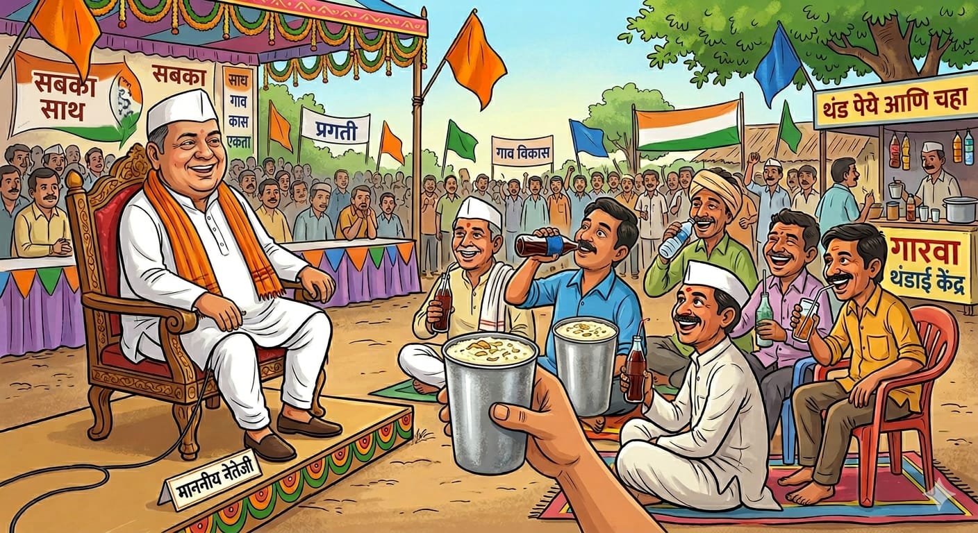 मात्र,बाहेर ४० अंशांच्या वर गेलेले तापमान पाहता,कार्यकर्त्यांच्या कपाळावर घामाच्या धारा वाहत असतात. अशा वेळी नेहमी ‘हो’ म्हणणारे कार्यकर्ते आता मोठ्या हिमतीने म्हणतात,”साहेब,चहा नको… काहीतरी थंडच घेऊ! लस्सी किंवा ताक मिळेल का?”